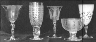 produced stemware, the ware did not carry a molded “ “ in a circle like the tumblers of the extra cost of manufacture. Machine produced stemware made today do carry this mark due to a change in production techniques.