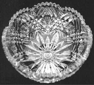 The popularity of the deep cut glassware continued throughout the “Brilliant Period”. The Brilliant period of American Cut Glass is that period between 1876 and 1915, 2 but a wide market for glass of this type continued until about 1925. The characteristics of the Brilliant Period cut glass are heavy lead glass with deep mitre cuts resulting in patterns of hobstars, fans, and other geometric designs. During the latter days of the Brilliant Period, 3 lightware and “rock crystal” came into circulation. In contrast to the heavyware of the Brilliant Period, the lightware was of thinner glass and the decorative patterns were not only straight-line cuttings but also cuts which were circular and sometimes combined with the straight-line cuts. Also, while all Brilliant Period heavy pieces were almost polished cuttings, the lightware pieces had unpolished gray cuttings combined with polished cuttings. In the case of the "rock crystal", it was lightware with all patterns polished. The duration of Libbey’s lightware was brief, lasting only a few years. The rarity of the Libbey lightware made through the teens make these pieces collectibles that are classified separate and distinctive from the heavyware of the American Brilliant Period cut glass.